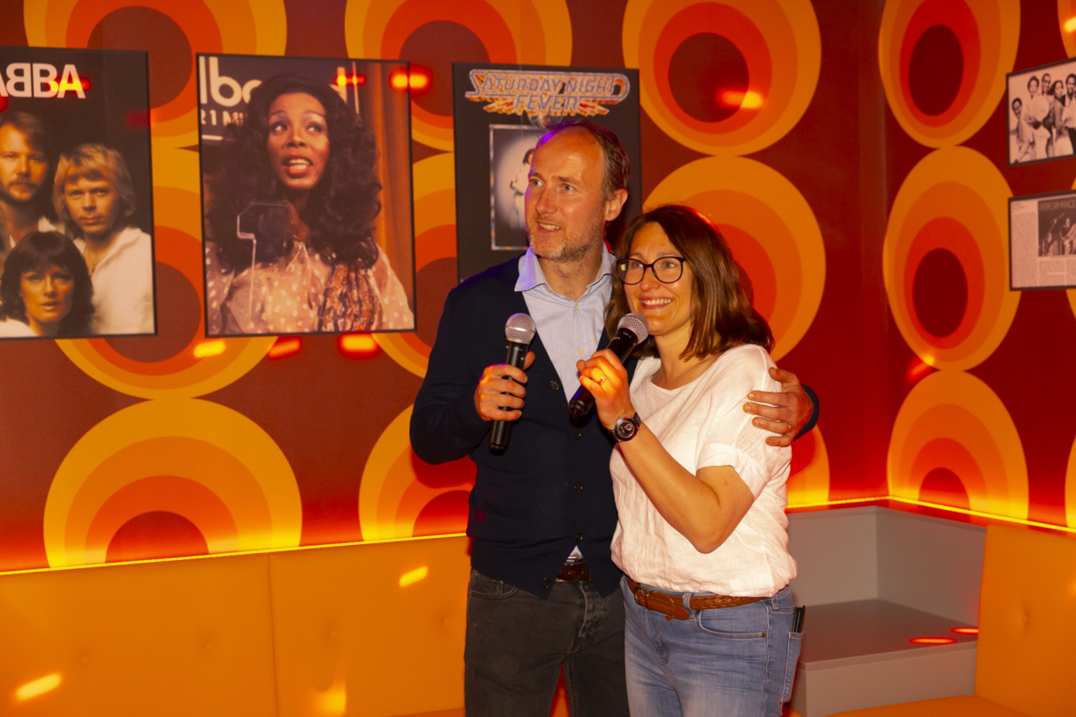Plonge dans les années 70 avec notre salle de karaoké disco ! Boule à facettes, néons et paillettes : prends le micro et fais vibrer la piste sur des hits légendaires !
