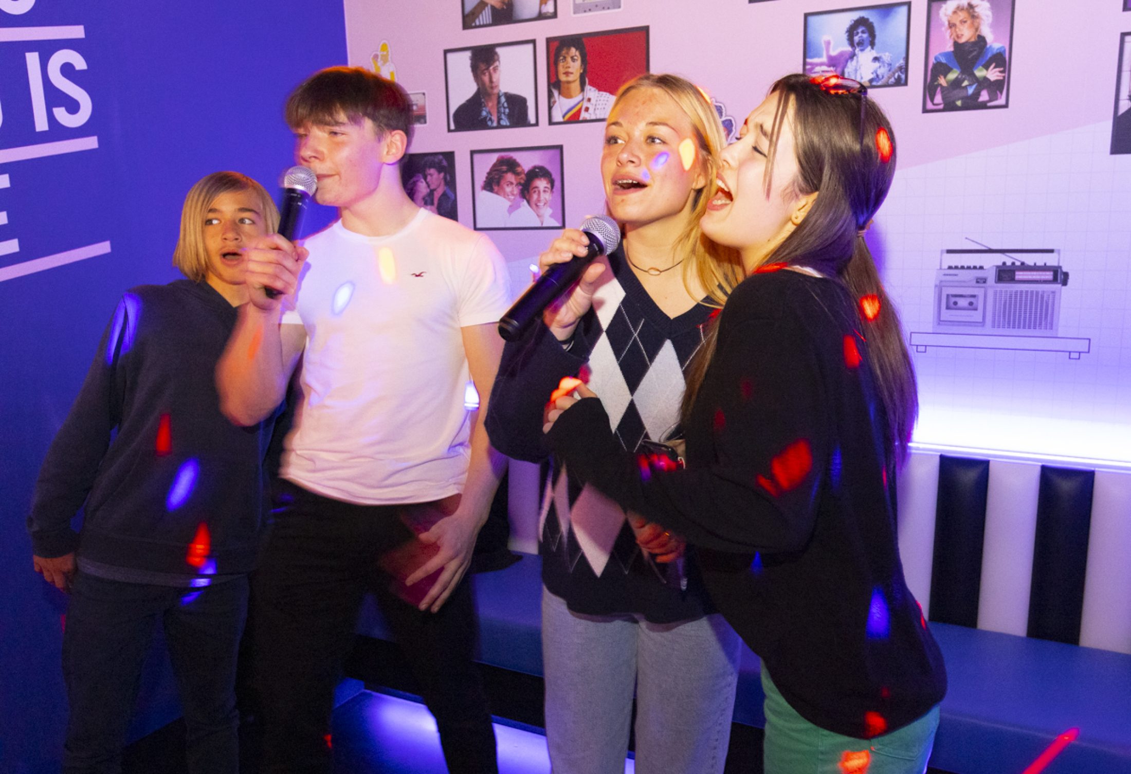 Revis les années 90 dans notre salle de karaoké rétro ! Posters iconiques, couleurs pop et vibes grunge : prends le micro et chante tes hits préférés de l’époque !