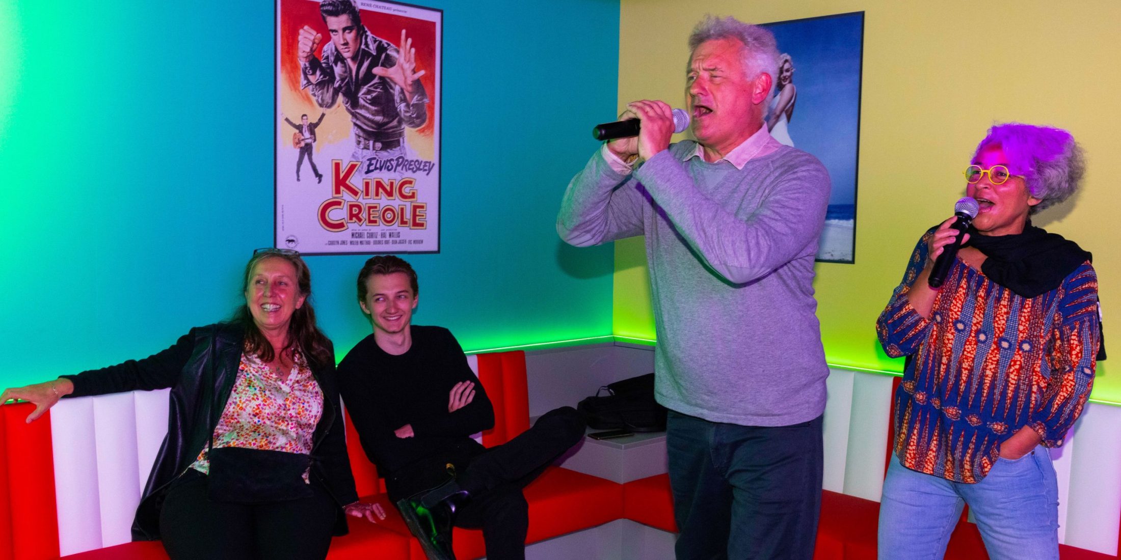 Plonge dans les sixties avec notre salle de karaoké psychédélique ! Couleurs pop, vinyles et vibes flower power : prends le micro et chante dans l’esprit peace & love !