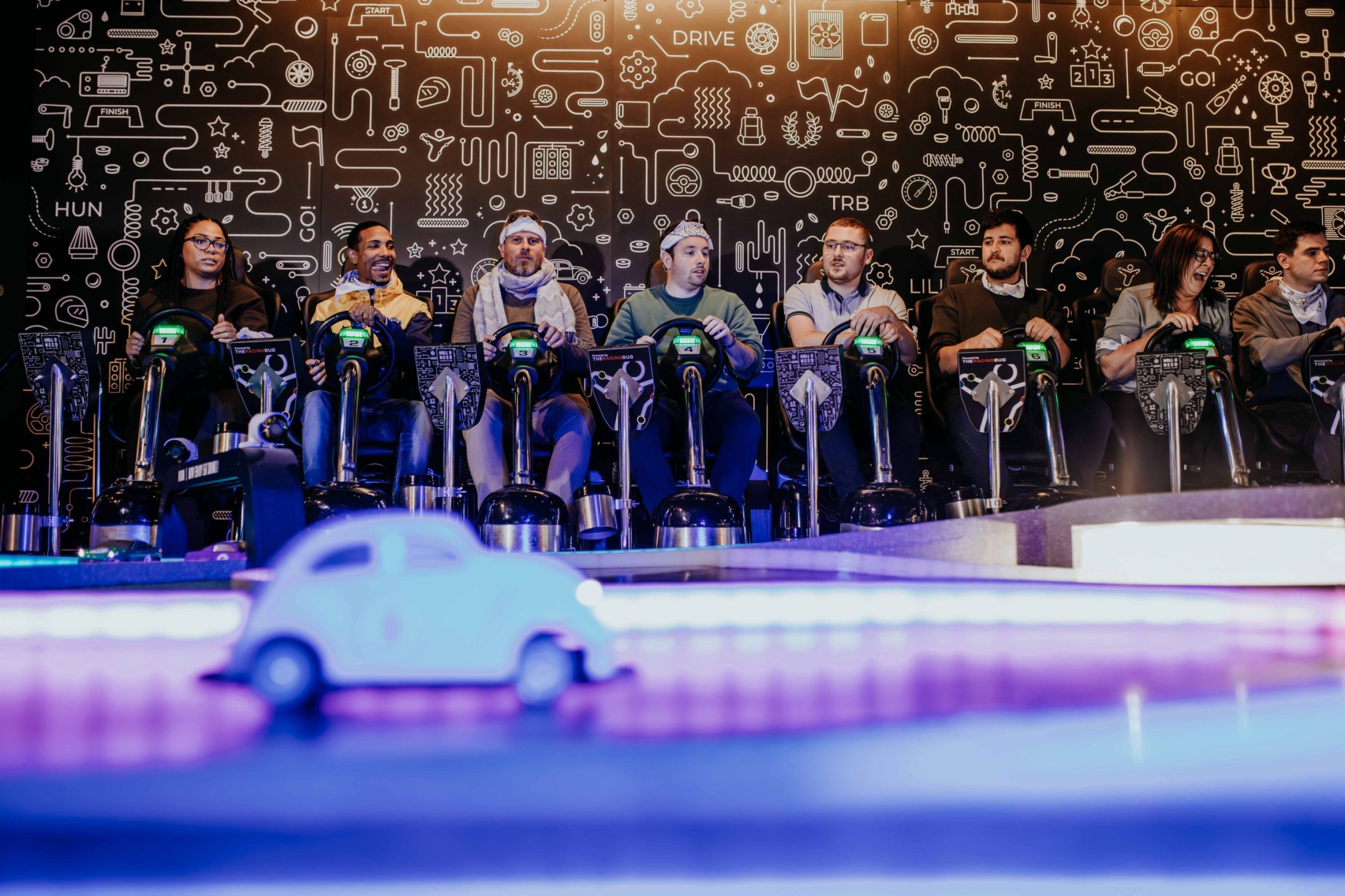 Viens tester l’un de nos jeux multijoueurs : le traditionnel derby pour 6 compétiteurs, le classique pacman à 8 joueurs, superblaster pour 4 tireurs etc.