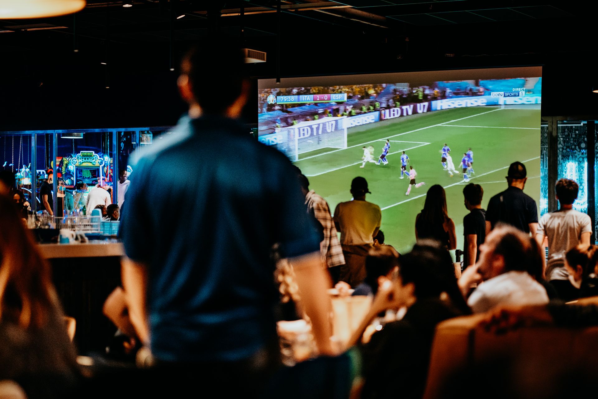 Diffusion au resto/bar/bowling : 6 écrans géants HD + 12 écrans 4K (55 & 75 pouces) + son HD