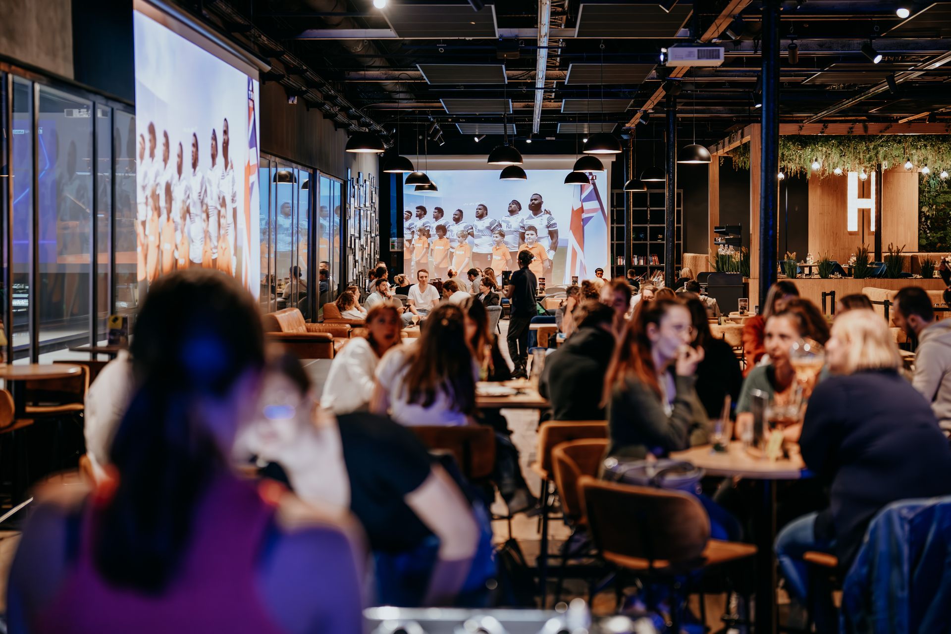 Diffusion au resto/bar/bowling : 6 écrans géants HD + 12 écrans 4K (55 & 75 pouces) + son HD