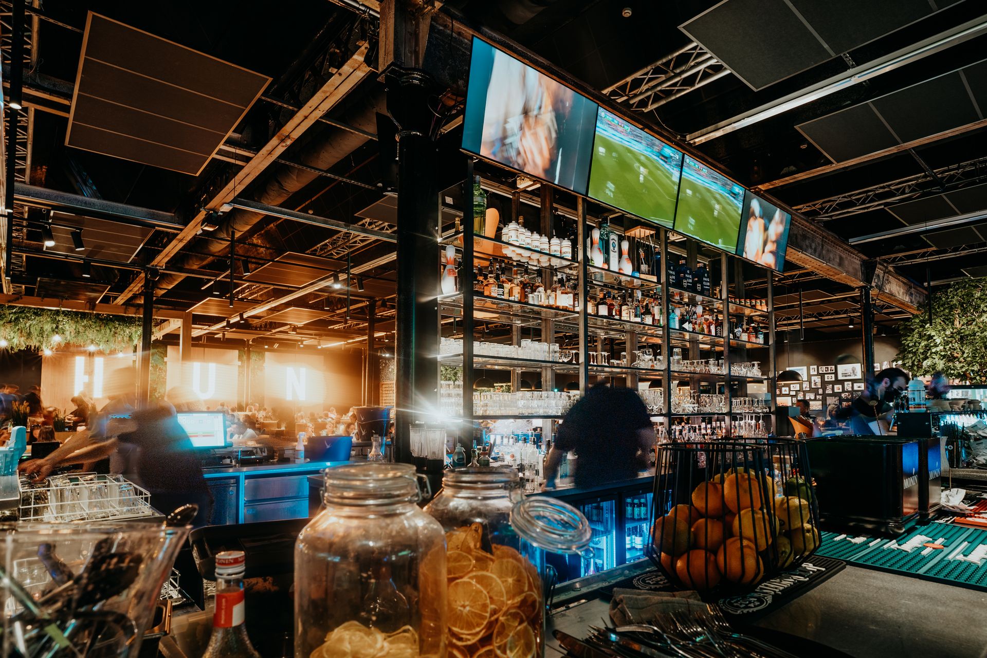Diffusion au resto/bar/bowling : 6 écrans géants HD + 12 écrans 4K (55 & 75 pouces) + son HD